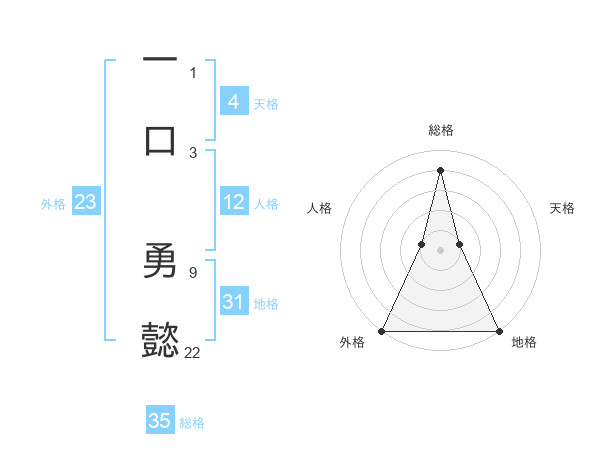 一口 勇懿さんを姓名の画数から五運を鑑定