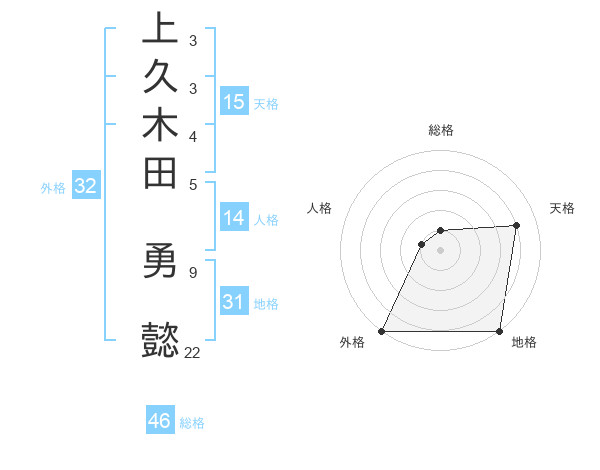上久木田 勇懿さんを姓名の画数から五運を鑑定