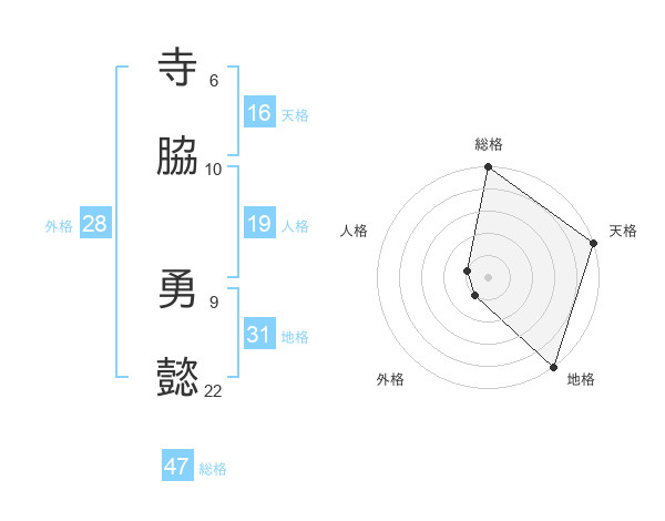 寺脇 勇懿さんの総格は47画の5点!