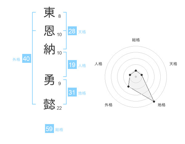 東恩納 勇懿さんを姓名の画数から五運を鑑定