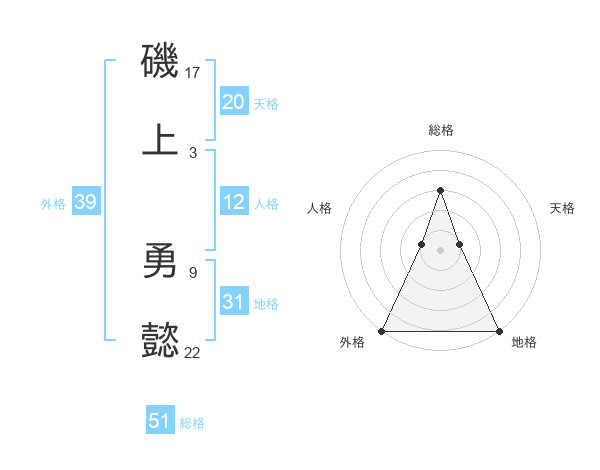 磯上 勇懿さんを姓名の画数から五運を鑑定