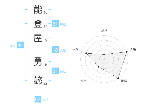 能登屋 勇懿さんを姓名の画数から五運を鑑定