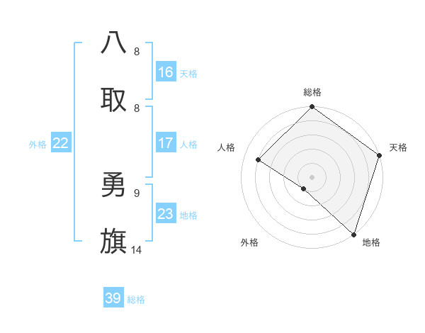 八取 勇旗さんを姓名の画数から五運を鑑定