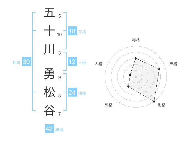 五十川 勇松谷さんを姓名の画数から五運を鑑定