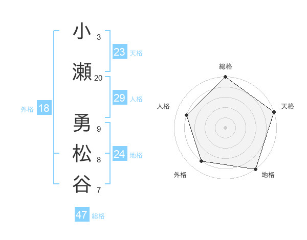 小瀬 勇松谷さんを姓名の画数から五運を鑑定