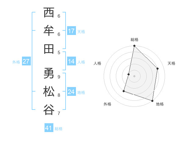 西牟田 勇松谷さんを姓名の画数から五運を鑑定