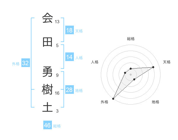 会田 勇樹土さんを姓名の画数から五運を鑑定