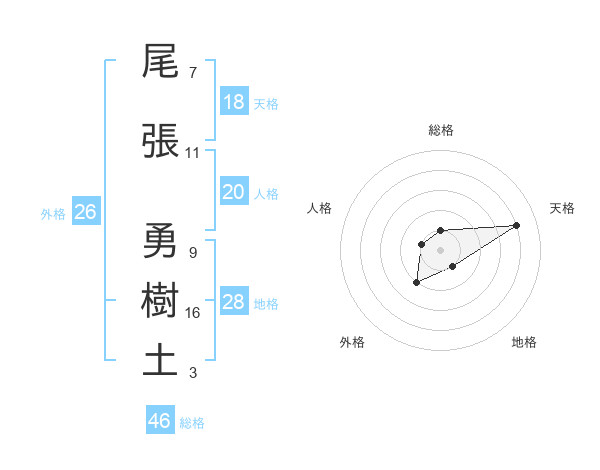 尾張 勇樹土さんを姓名の画数から五運を鑑定