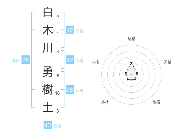 白木川 勇樹土さんを姓名の画数から五運を鑑定