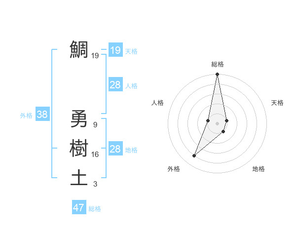 鯛 勇樹土さんを姓名の画数から五運を鑑定