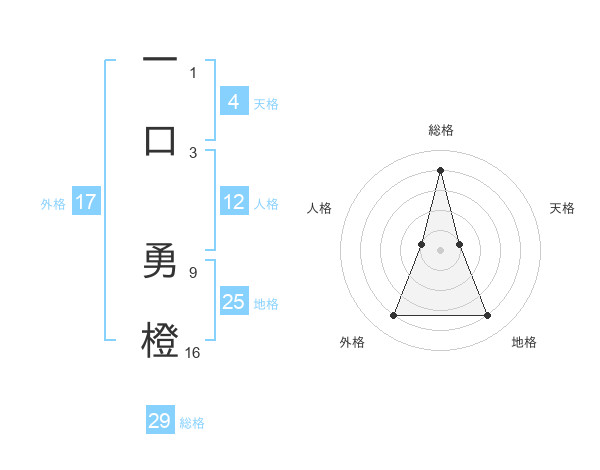 一口 勇橙さんを姓名の画数から五運を鑑定