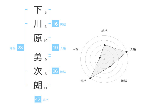 下川原 勇次朗さんを姓名の画数から五運を鑑定