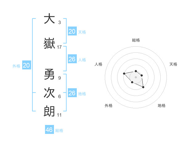 大嶽 勇次朗さんを姓名の画数から五運を鑑定