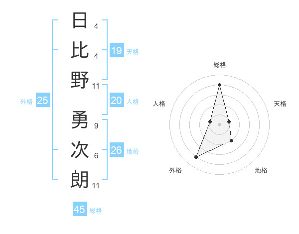 日比野 勇次朗さんを姓名の画数から五運を鑑定