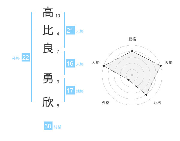 高比良 勇欣さんを姓名の画数から五運を鑑定
