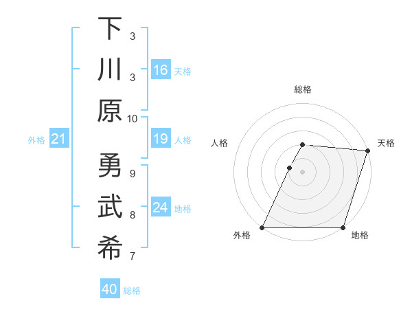 下川原 勇武希さんを姓名の画数から五運を鑑定