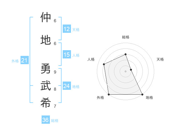 仲地 勇武希さんを姓名の画数から五運を鑑定