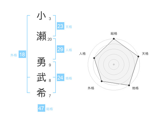 小瀬 勇武希さんの総格は47画の5点!
