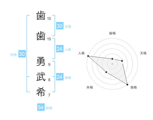 歯歯 勇武希さんの外格は30画の2点!