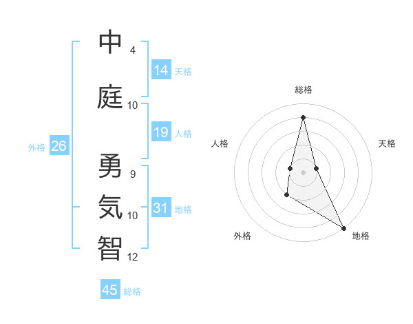 中庭 勇気智さんを姓名の画数から五運を鑑定