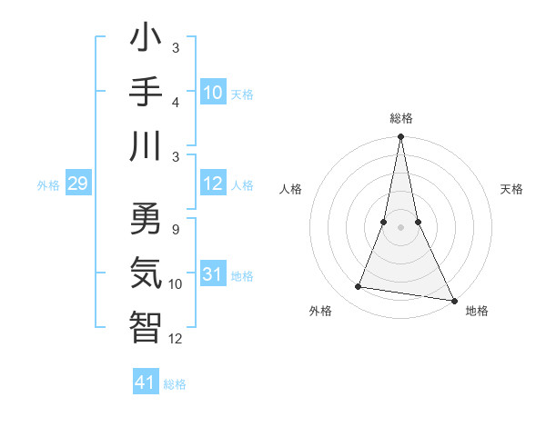 小手川 勇気智さんを姓名の画数から五運を鑑定