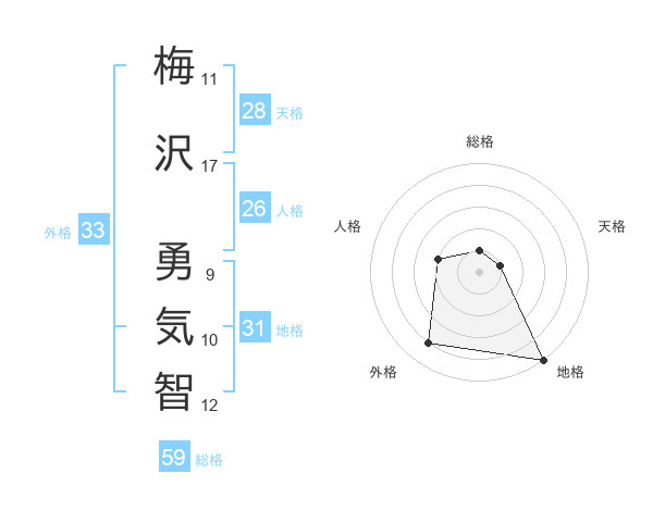 梅沢 勇気智さんを姓名の画数から五運を鑑定