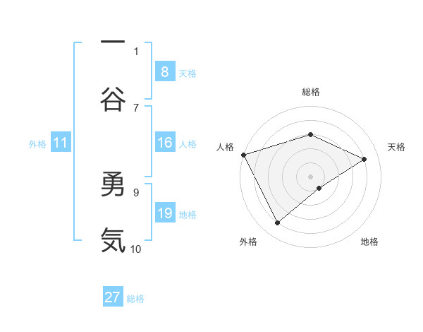 一谷 勇気さんの総格は27画の3点!