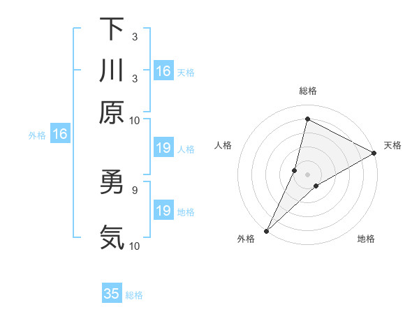 下川原 勇気さんの天格は16画の5点!