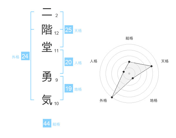 二階堂 勇気さんの天格は25画の4点!