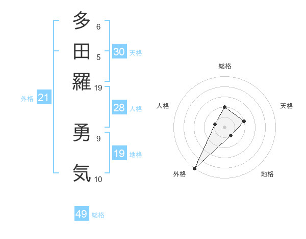 多田羅 勇気さんを姓名の画数から五運を鑑定