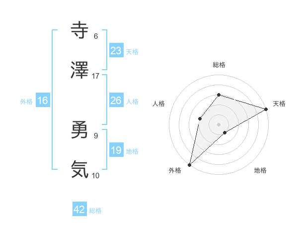 寺澤 勇気さんの天格は23画の5点!