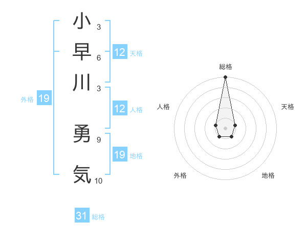 小早川 勇気さんの総格は31画の5点!