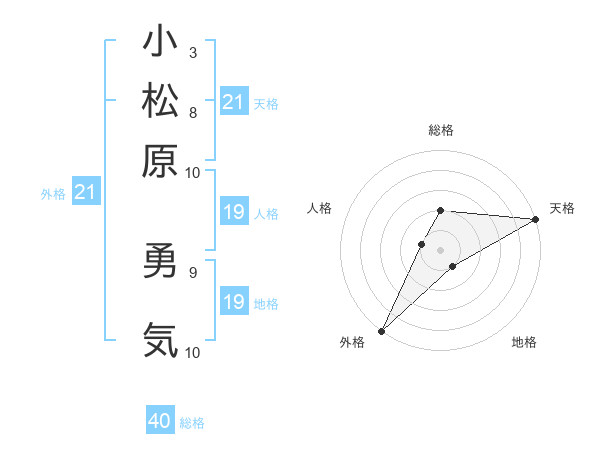 小松原 勇気さんの天格は21画の5点!