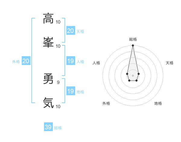 高峯 勇気さんの総格は39画の5点!