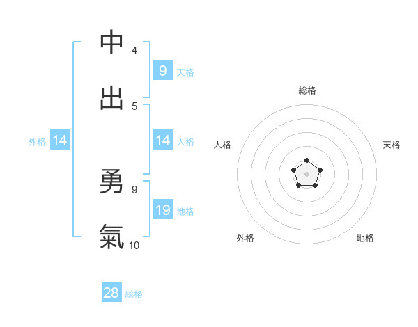 中出 勇氣さんの総格は28画の1点!
