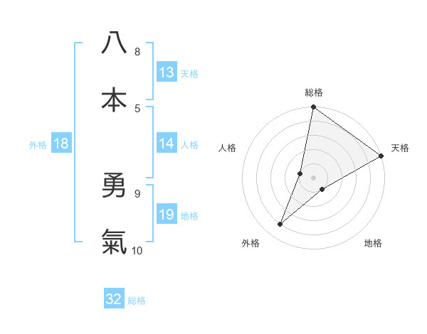 八本 勇氣さんの天格は13画の5点!