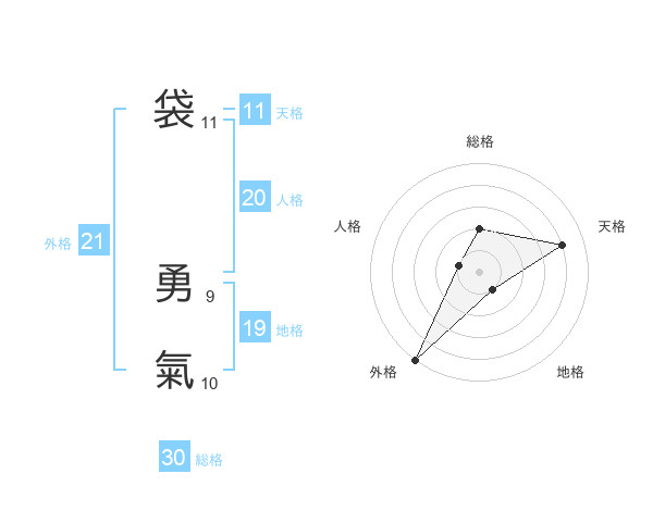 袋 勇氣さんの外格は21画の5点!