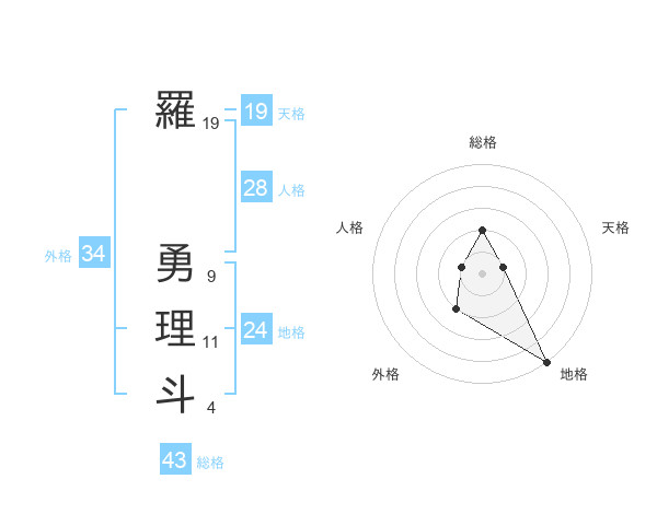 羅 勇理斗さんの天格は19画の1点!