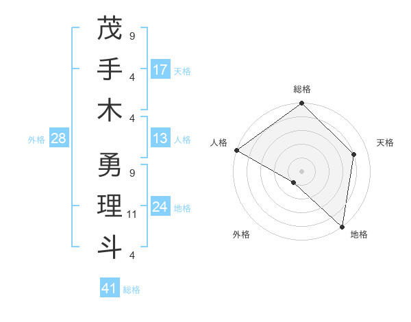 茂手木 勇理斗さんの天格は17画の4点!