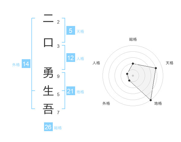 二口 勇生吾さんの地格は21画の5点!