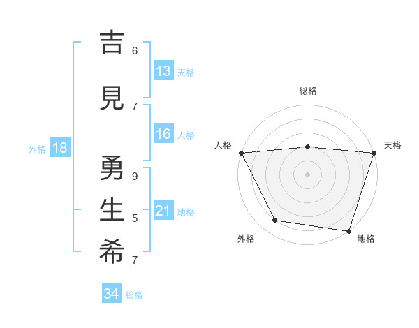 吉見 勇生希さんの天格は13画の5点!