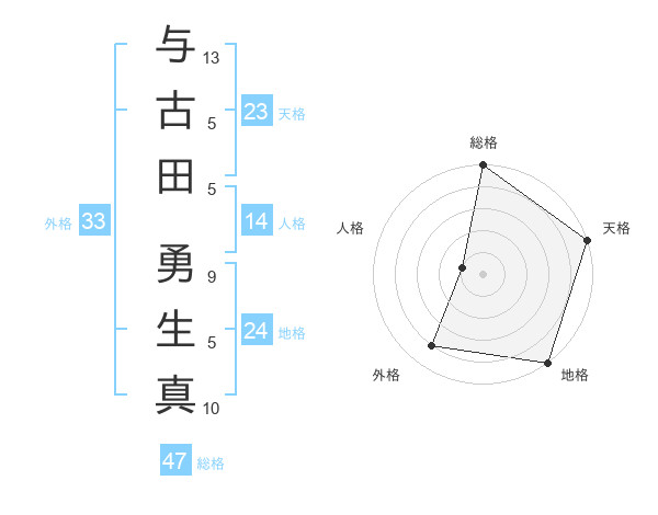 与古田 勇生真さんの総格は47画の5点!