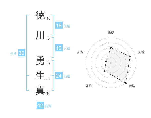 徳川 勇生真さんを姓名の画数から五運を鑑定