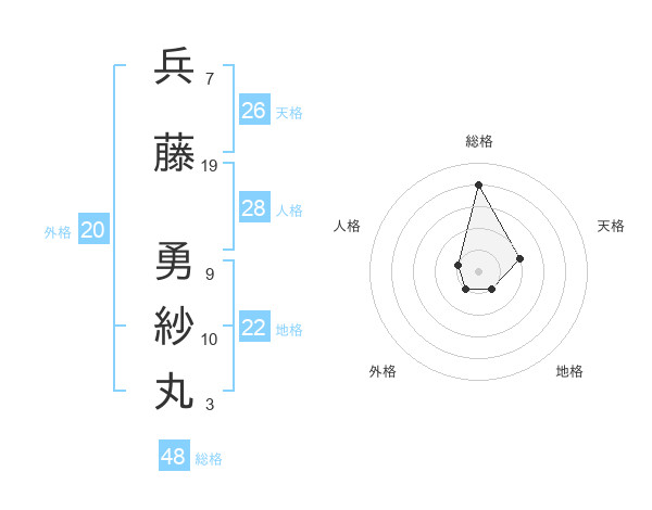 兵藤 勇紗丸さんを姓名の画数から五運を鑑定