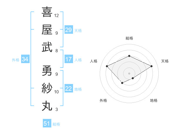 喜屋武 勇紗丸さんの総格は51画の3点!