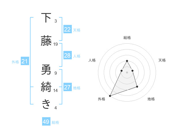 下藤 勇綺きさんの総格は49画の2点!