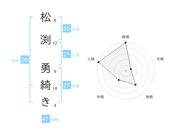 松渕 勇綺きさんを姓名の画数から五運を鑑定