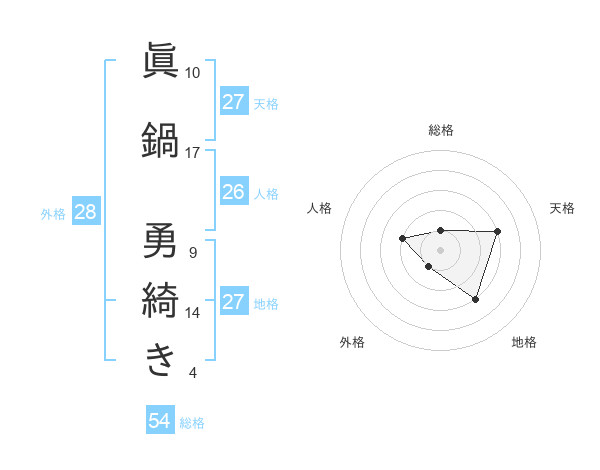 眞鍋 勇綺きさんを姓名の画数から五運を鑑定
