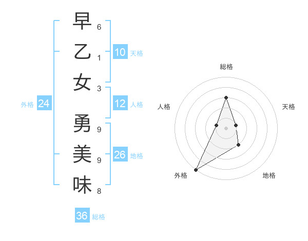 早乙女 勇美味さんを姓名の画数から五運を鑑定