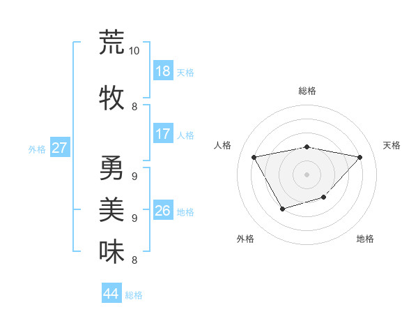 荒牧 勇美味さんの総格は44画の2点!